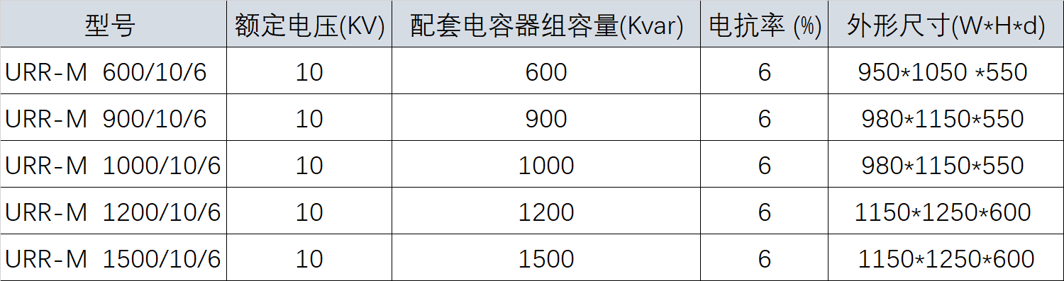 URR-M系列高压调谐铁芯电抗器,铁芯采用优质低损耗的取向硅钢片,接线端子和绕组均采用铜线制作,所有制造的产品均在真空下注入环氧树脂,空载损耗低,机械强度高,震动小,噪音小,抗短路能力强,磁饱和能力强。